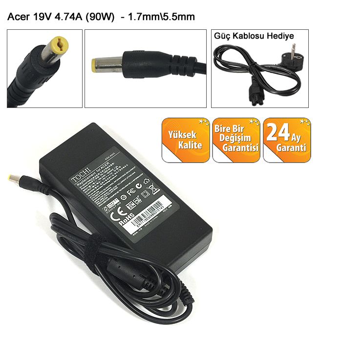 Acer Aspire 5710ZG 19V 4.74A (90W) 1.7mm - 5.5mm Notebook Adaptörü